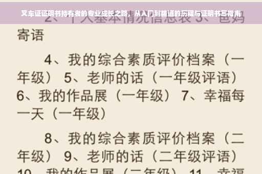 随着物流行业的迅猛崛起,叉车作为关键搬运设备,其操作人员的技能水平逐渐受到社会各界的重视,本文将带您深入了解叉车证证明书背后的故事,探寻叉车操作人员从新手到熟练精通的职业历程。