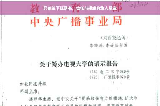 在这个充满竞争与挑战的时代,人与人之间的信任显得尤为珍贵,一份简单的证明书,背后却蕴藏着深厚的兄弟情谊与担当,我要讲述的,正是关于一对兄弟间签下证明书的故事,那是他们之间信任与支持的见证。