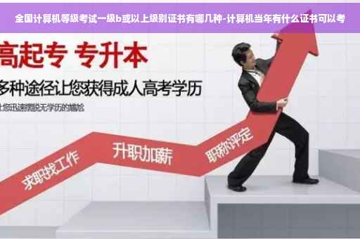 全国计算机等级考试一级b或以上级别证书有二级vb、二级c语言、二级C++、二级Java、二级WEB程序设计、二级VFP、三级PC技术、三级信息管理技术、三级数据库技术、三级网络技术等。 全国计算机等级考试(NationalComputerRankExamination,以下简称NCRE),是经原国家教育委员会(现教育部)批准,由教育部考试中心主办,面向社会,用于考查非计算机专业应试人员计算机应用知识与技能的全国性计算机水平考试体系。