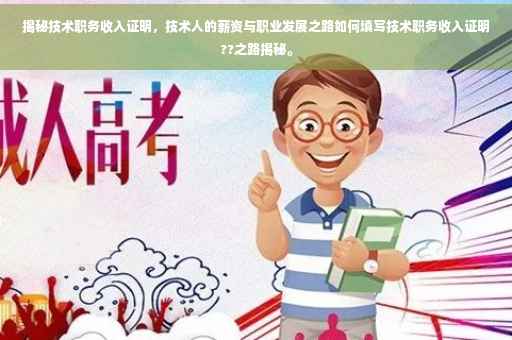 摘要:本文将探讨技术职务在收入证明中的填写方式,同时揭秘技术人员的薪资与职业发展之路。本文将指导读者如何正确填写技术职务,并探讨技术人员的薪资水平及其影响因素,包括技能水平、工作经验、行业发展趋势等。本文还将讨论技术人员职业发展的路径和关键因素,帮助读者了解如何提升技能、拓展职业领域和实现个人价值。本文旨在帮助技术人员更好地规划自己的职业发展,提高个人收入水平。