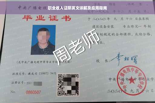 摘要:本文介绍了职业收入证明的英文详解及实际应用。文章详细解释了职业收入证明的概念和作用,包括其在不同行业和场合下的使用场景。文章还提供了职业收入证明的英文翻译,帮助读者更好地理解和应用相关概念。通过阅读本文,读者可以了解到职业收入证明的重要性和实际应用,从而更好地应对职场需求。