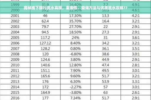 随着金融行业的快速发展,越来越多的人开始关注个人财务管理和投资理财,在这个过程中,线下银行流水作为个人财务状况的重要证明,其重要性日益凸显,本文将为您揭示线下银行流水的真相,以及它在日常生活和投资理财中的重要作用,我们还将分享如何获取优质线下银行流水的方法,帮助您更好地管理个人财务,实现财富增值。