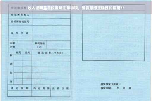 摘要:收入证明盖章的正确位置通常位于证明文件的右下角,且需确保章的位置清晰、可见。在盖章时,注意事项包括确认章的真实性、合法性以及有效性,避免使用模糊或损坏的章。确保收入证明文件的正规性和权威性,需遵循公司或相关机构的盖章规定。