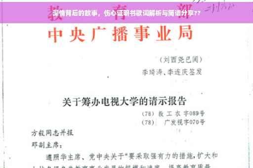 摘要:,,《伤心证明书》是一首充满深情的歌曲,背后蕴含着动人的故事。这首歌的歌词描绘了内心的悲伤与痛苦,通过旋律传达出深刻的情感。本文还分享了该歌曲的简谱,让读者更好地了解这首歌的构成。??是一首令人动容的曲目,值得一听。