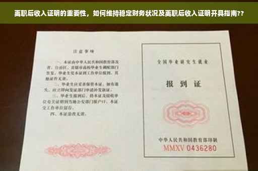 随着时代的变迁,越来越多的人开始关注自己的职业发展,而离职成为了一个不可避免的话题,在离职后,很多人都会面临收入减少的问题,如何保持稳定的财务状况变得尤为重要,本文将为大家分享一些离职后如何保持稳定的财务状态的建议,同时也会探讨收入证明在离职后的重要性。