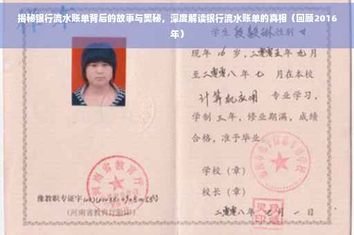 摘要:本文将揭示银行流水账单背后的故事,深度解读其背后的奥秘。通过回顾2016年的银行流水账单,我们将了解银行流水账单的重要性及其所涵盖的详细信息。阅读本文,您将更好地掌握如何理解和分析银行流水账单,从而更好地管理个人财务。