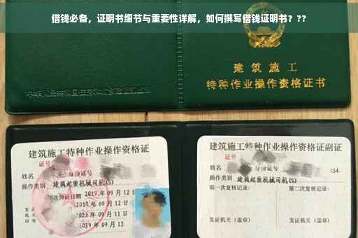 在现代社会,经济活动的频繁和人们消费观念的转变使得借贷行为愈发普遍,无论是个人还是企业,在面临资金周转困难时,借款往往成为解决问题的一种有效手段,借钱并非简单的给予和接受过程,其中涉及到的证明书成为了确保借贷关系透明、合法和保障双方权益的关键,本文将详细介绍借钱的证明书的重要性、种类、内容要点以及如何准备一份有效的证明书,帮助读者更好地了解这一重要环节。