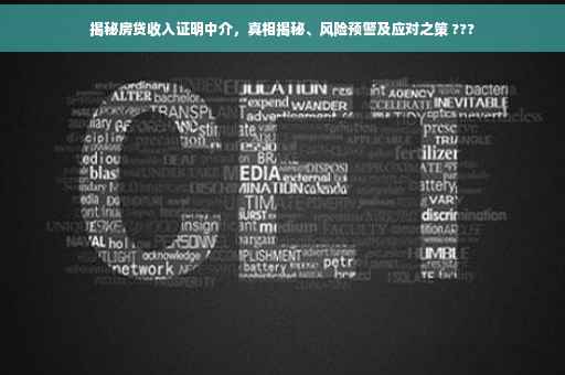 随着房价不断攀升,购房贷款已成为越来越多人的选择,在申请房贷过程中,收入证明是银行审核贷款的重要一环,一些中介利用这一环节提供所谓的“收入证明中介服务”,帮助购房者顺利获得贷款,本文将深入探讨房贷收入证明中介的真相、风险及应对之策,为广大购房者提供有益的参考。