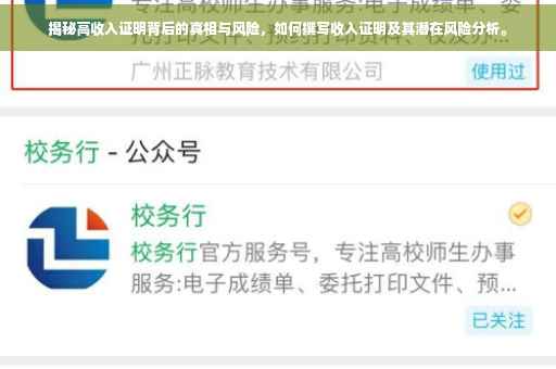 在当今社会,收入证明已成为许多场合的通行证,无论是金融交易、职场竞争还是日常生活,它都扮演着举足轻重的角色,这份简单的纸面证明,却逐渐演变成为个人经济实力和信用状况的衡量标准,伴随着其重要性的提升,一些人开始尝试通过不正当手段伪造高收入证明,以期望达到个人目的,本文旨在深入探讨收入证明背后的真相与风险,揭示这一现象的内在本质和潜在危害。