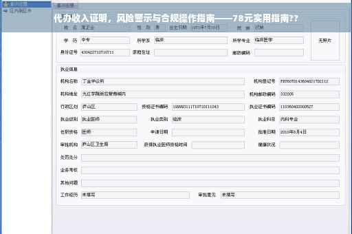 摘要:本操作指南旨在提供关于代办收入证明的风险警示和合规操作建议。内容包括代办收入证明的费用为78元,并强调代办过程中需要注意的风险点,如信息真实性、合规性和法律责任等。提供合规操作的步骤和建议,以确保代办收入证明的过程合法、有效。