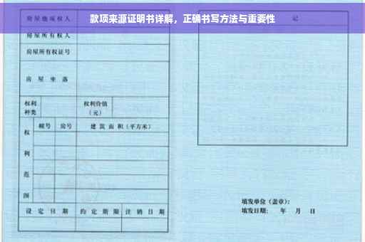 款项来源证明书作为一种重要的书面证明文件,在社会经济活动中具有广泛的应用,正确书写和合理使用款项来源证明书,有助于保障交易安全、维护合法权益、提高信任度以及便于监管,我们应对款项来源证明书给予足够的重视,了解其详细内容和书写方式,并在实际生活中加以应用。