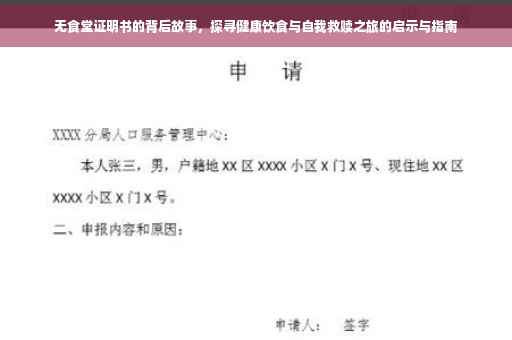 随着生活节奏的加快,现代人对饮食健康越来越重视,在某些特定的环境,如一些学校或企事业单位,由于种种原因并未设立食堂,这给员工的饮食选择带来不小的困扰,本文将讲述一个关于无食堂证明书的感人故事,探讨健康饮食与自我救赎的探寻之旅。