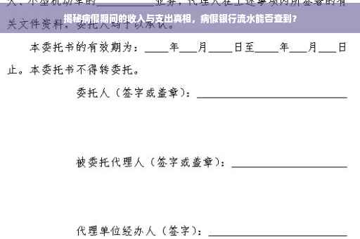 近年来,随着社会的快速发展和工作压力的增大,越来越多的人因健康问题而需要请假休息,病假是常见的一种请假方式,在病假期间,我们的收入来源可能会发生变化,银行流水记录成为反映这一变化的重要证据,本文将围绕病假银行流水展开讨论,揭示病假期间的收入与支出真相。