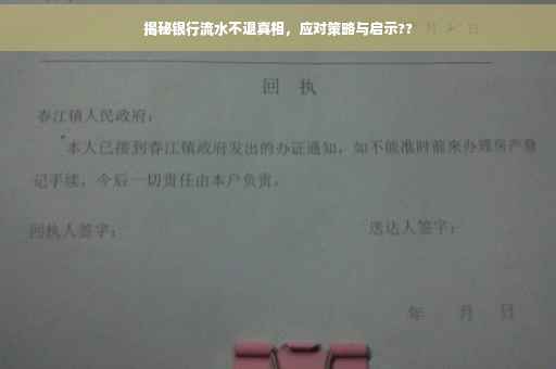 近年来,随着金融市场的快速发展,银行业务日益繁忙,其中银行流水作为企业与个人经济活动的直接体现,其重要性日益凸显,在某些情况下,人们可能会遇到银行流水不退的情况,这不仅引发了公众对银行服务质量的质疑,也涉及到金融市场的规范与监管问题,本文将围绕这一主题展开探讨,揭示背后的真相,并为大家带来一些启示。