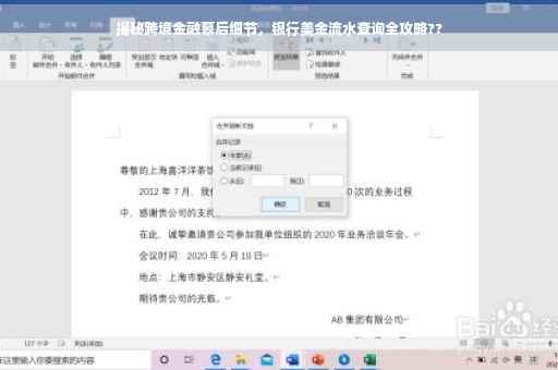 银行美金流水作为跨境金融交易的重要组成部分,对于企业和个人而言具有极其重要的财务参考价值,了解银行美金流水的概念、作用及其背后的跨境金融细节,有助于更好地管理财务、规避风险和实现合规运营,希望本文能为您带来启发和帮助。