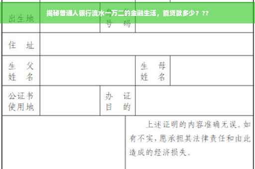 摘要:银行流水一万二反映了普通人的日常金融活动情况,对于贷款额度有一定影响。具体能贷多少需结合个人信用、收入状况、职业等因素评估。本文旨在揭示普通人通过银行流水所展现的金融生活状态,并提供相关贷款知识,帮助读者更好地理解和规划个人财务。