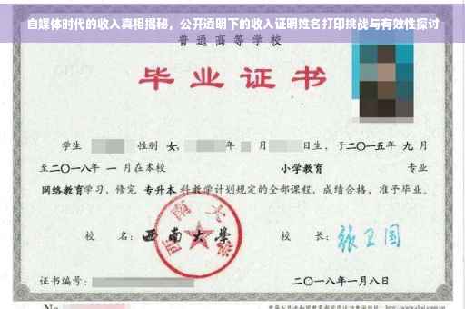 随着互联网的普及和新媒体的崛起,自媒体成为越来越多人的职业选择,在自媒体时代,每个人都可以通过写作、拍摄、直播等方式分享自己的观点和创意,从而获得收益,关于收入证明的问题也随之浮出水面,本文将探讨自媒体作者的收入证明问题,姓名打印等细节,揭示自媒体时代的收入真相与公开透明挑战。