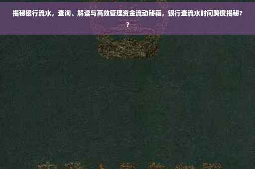 在当今社会,随着金融科技的飞速发展和个人理财需求的日益增长,越来越多的人开始关注自己的资金流动情况,银行流水作为记录个人或企业账户交易明细的重要文件,其重要性不言而喻,如何查询银行流水?如何解读其中的信息?如何高效管理资金流动?本文将一一为您解答。