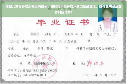 摘要:本文将揭示北京银行流水背后的故事,探讨如何巧妙利用银行流水助力金融生活。通过了解银行流水的含义和作用,您将学会如何利用北京银行流水管理个人财务,实现财务增值。本文将介绍融通支付科技备付金的作用,为您的金融生活提供更多便利。通过阅读本文,您将更好地掌握银行流水的重要性,为您的金融规划提供有力支持。