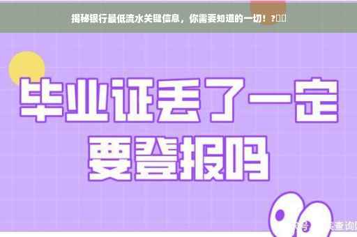 摘要:本文将为你详解银行最低流水关键信息。流水是评估个人或企业信用状况的重要指标之一,不同银行对最低流水的标准有所不同。关注最低流水,有助于你了解在申请贷款或办理其他银行业务时所需的资金流动标准,从而顺利获得银行信任和服务。本文旨在帮助你了解银行最低流水的相关信息,以便更好地规划个人财务和银行业务。