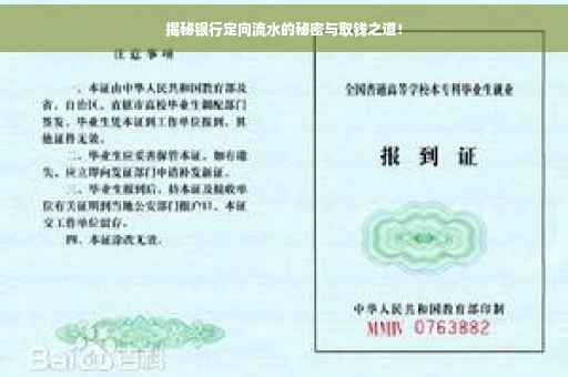 摘要:银行定向流水背后隐藏着不为人知的秘密。通过定向流水,人们可以巧妙地从银行取出资金。这一过程涉及到银行内部的特定操作,使得资金流动更加灵活和便捷。背后的操作细节和具体方法并不公开透明,需要谨慎对待。揭示这一秘密有助于人们更好地了解银行系统的运作机制,同时提醒公众在使用银行服务时保持警惕。