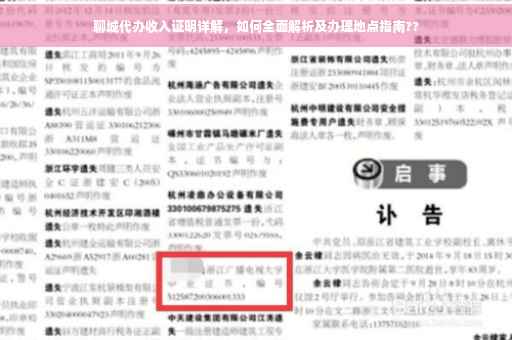 摘要:本文将全面解析聊城代办收入证明的相关内容,包括如何开具收入证明以及具体的办理地点等。想要了解如何在聊城办理收入证明的朋友们,不妨继续阅读本文,以便获取详尽的信息。本文将为您提供一个简洁明了的指南,帮助您顺利完成收入证明的代办。