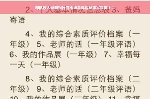摘要:本文将详细介绍部队收入证明的银行流水账单,包括如何准备和撰写。文章将指导读者了解部队收入证明银行流水账单的重要性,并提供清晰的步骤和要点,以帮助读者了解如何正确书写相关内容。通过本文,读者将了解如何准确反映部队的收入情况,以便在需要时提供有效的证明。