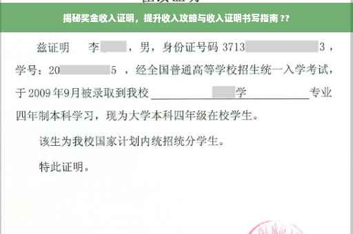 在现代社会,随着经济的不断发展,越来越多的人开始关注自己的收入状况,除了基本的工资收入外,奖金成为了许多职场人士的重要收入来源之一,本文将为你揭示奖金收入证明的重要性以及如何让你的收入更上一层楼。