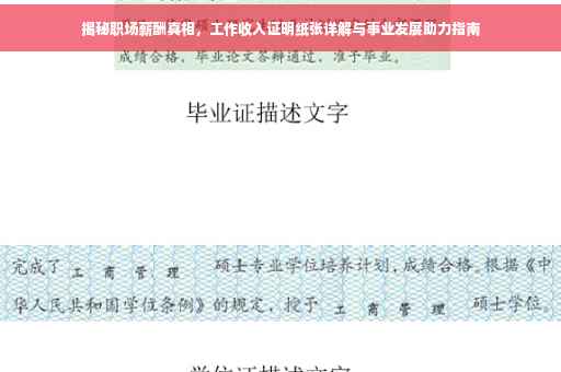 工作收入证明纸张在职场中具有举足轻重的地位,了解其作用、内容、获取方式及注意事项对个人事业发展具有重要意义,希望通过本文的介绍,读者能更好地了解职场薪酬真相,为个人事业发展助力。