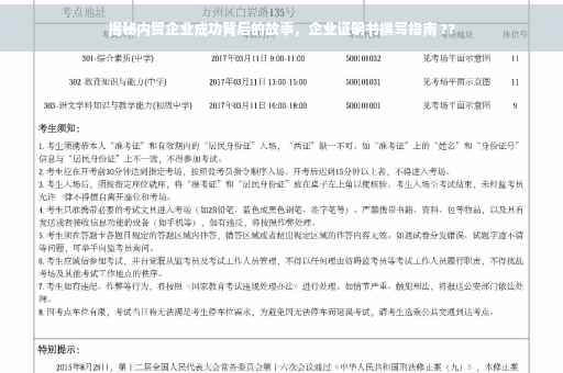 摘要:,,本文将介绍内贸企业证明书的撰写方式,同时揭秘成功企业的背后故事。通过了解企业证明书的结构和内容,读者可以了解到如何撰写一份有效的内贸企业证明书,包括企业的基本信息、业务范围、经营状况和信誉等方面的内容。本文将深入探讨成功企业的关键因素,如战略规划、团队协作、市场营销和创新等,为想要在内贸领域取得成功的企业提供有益的启示和建议。