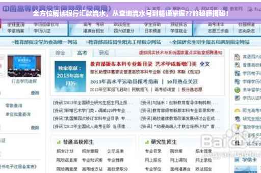 随着金融行业的日新月异,银行汇款流水已经渗透到我们生活的每一个角落,无论是个人还是企业,了解银行汇款流水的概念、作用以及如何查询和解读,对于我们的财务管理和税务申报都具有至关重要的意义,本文将带您深入探讨银行汇款流水的方方面面,从入门到精通,让您轻松掌握相关知识。