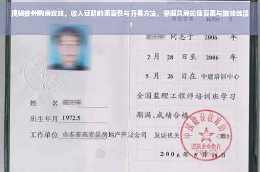 摘要:本文将介绍徐州购房过程中使用收入证明的重要性及其策略选择。文章将涵盖收入证明的具体开具方式,以及购房过程中的关键要素,如预算规划、房屋选择、贷款申请等。通过本文,读者可以了解如何利用收入证明成功购房,并解决在购房过程中可能遇到的难题。