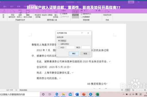 在当今社会,随着城市化进程的加速,越来越多的人选择离开家乡前往大城市谋求发展,在大城市生活,想要长期定居下来,积分落户政策便成为了一道门槛,而积分落户收入证明则是这一政策中的关键环节,本文将详细介绍积分落户收入证明的重要性,以及它对我们生活的影响。