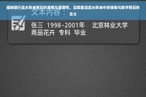 银行流水账单不仅是我们个人经济活动的见证,更是信用评估的重要依据,在贷款申请、信用卡办理、求职申请等场景下,银行流水账单都是评估个人或企业信用状况的重要依据之一,了解银行流水账单的真相和重要性,对于维护个人信用至关重要。