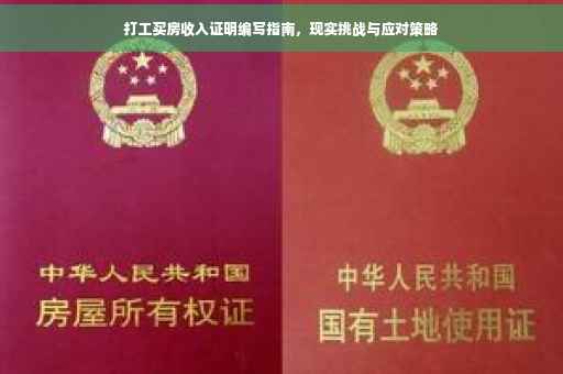 随着城市化进程的推进,越来越多的人选择在大城市中打工并寻求购房的机会,面对高昂的房价,打工买房无疑是一项巨大的挑战,为了顺利购房,收入证明成为了不可忽视的重要环节,本文将详细解析打工买房过程中收入证明所面临的现实挑战,并为大家提供应对策略,助广大打工者一臂之力,顺利实现购房梦想。