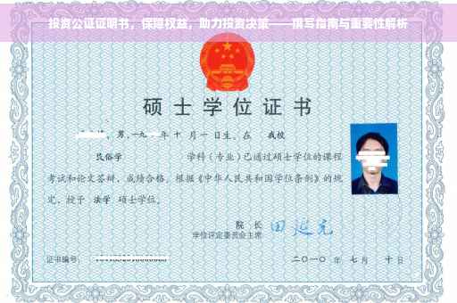 随着全球经济的不断发展,越来越多的人开始关注投资领域,在进行投资时,如何确保自身权益、规避风险成为投资者关注的焦点,投资公证证明书作为一种重要的法律文件,能够为投资者提供法律保障,降低投资风险,本文将详细介绍投资公证证明书的作用、办理流程以及注意事项,帮助投资者更好地了解和使用这一工具。