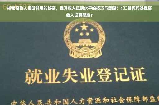 揭秘高收入证明背后的秘密,提升收入证明水平有巧妙方法。想要提高收入证明水平,可以通过增加收入来源、提升职业技能、拓展人际关系等方式实现。收入证明开具时需注意真实性和合规性,同时提供充分的证明材料和解释,巧妙提高收入证明金额。掌握这些方法,轻松提升个人收入证明水平。