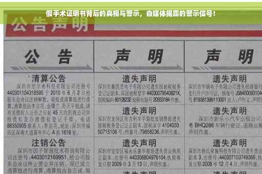 摘要:近期自媒体曝光假手术证明书的真相,引发社会关注。这些假的手术证明背后隐藏着不为人知的秘密,警示人们需警惕。本文揭露了假手术证明书的存在及其危害,提醒公众提高警惕,防范被虚假证明误导。同时呼吁相关部门加强监管,维护公平正义。