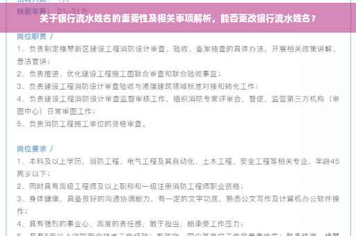摘要:银行流水中的姓名极为重要,反映了个人在金融交易中的真实身份。关于银行流水姓名的相关问题,本文将进行解析。重点探讨银行流水姓名是否可以更改,并提醒读者在操作过程中应注意的相关事项,以确保个人金融信息的真实性和安全性。
