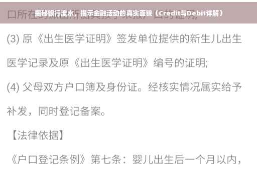 银行流水记录金融活动的真实面貌,包括credit和debit两个方面。credit显示资金流入,反映收入、转账等;debit显示资金流出,体现消费、支付等。通过银行流水,可以了解个人或企业的经济活动和财务状况。在当今社会,银行流水已成为信贷审批、投资理财等领域的重要依据。