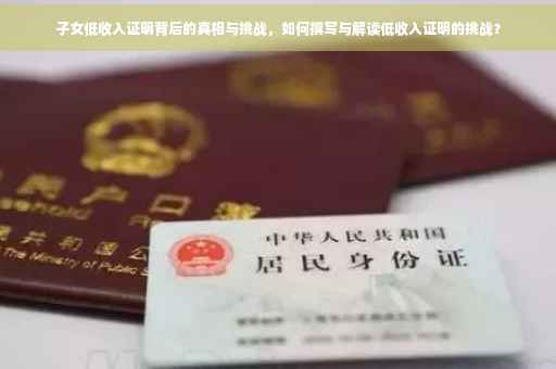 随着社会的进步和经济的发展,子女的就业和收入状况已成为众多家庭关注的焦点,近年来,关于子女低收入证明的话题逐渐受到社会的广泛关注,这一现象背后隐藏着诸多家庭的真实困境与挑战,本文将深入探讨子女低收入证明的背后原因、影响,以及应对之策。