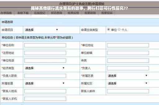 其他银行流水记录着我们的经济生活点点滴滴,背后蕴含着许多故事,通过了解不同银行的流水特点和背后的故事,我们可以更深入地了解人们的经济生活状况,学会查询其他银行流水,对于我们的生活和工作具有重要意义,希望本文能够帮助您了解其他银行流水的相关知识,为您的生活增添更多色彩。