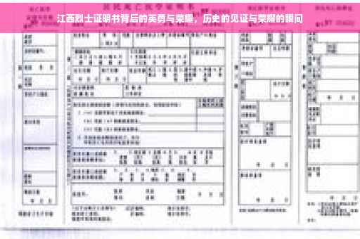 江西烈士证明书是一份由政府颁发的证明文件,用于证明持有者在革命战争年代为国家和人民英勇斗争、最终牺牲的烈士身份,这份证明书的背后,是一段段感人至深的英勇事迹,是对烈士们无私奉献、英勇就义的最好见证。