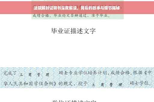 近年来,随着社会的快速发展,涉及财产纠纷、合同争议等案件逐渐增多,在这个过程中,法院解封证明书成为了解决这些问题的重要环节,本文将围绕这一主题展开,介绍法院解封证明书的含义、作用及其在司法实践中的应用,通过具体案例展示其背后的故事,并深入分析相关内容,以期为读者提供更多了解这一法律工具的机会。