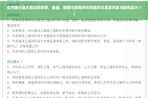 摘要:本文将探讨女方银行流水背后的故事,揭示金钱、婚姻与家庭财务之间的微妙关系。通过深入了解银行流水在贷款申请中的作用,我们将探讨女方是否能够通过银行流水成功贷款,以及在此过程中所面临的挑战和机遇。文章将引导读者思考银行流水在家庭生活和个人经济中所扮演的重要角色。
