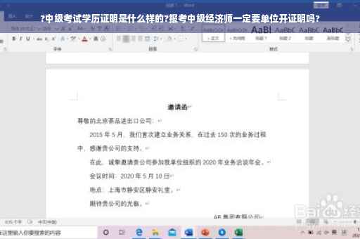 报考中级经济师一定要单位开证明。 根据中级经济师报考条件可知,考中级经济师一般要求有学历、工作年限。工作年限是要在单位开证明,报名后的报名表也是要在单位盖章的。
