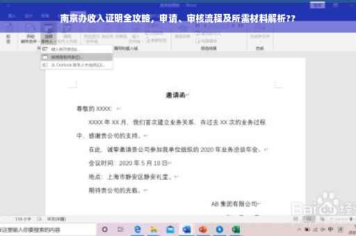 南京办收入证明全解析:从申请到审核,详细介绍所需步骤和材料。您需要了解南京办收入证明的具体要求,包括所需材料、流程等。本文将为您提供全面的指南,帮助您轻松完成收入证明的办理。??本文介绍了南京办理收入证明的全过程,包括申请和审核环节,帮助读者了解所需材料和流程。