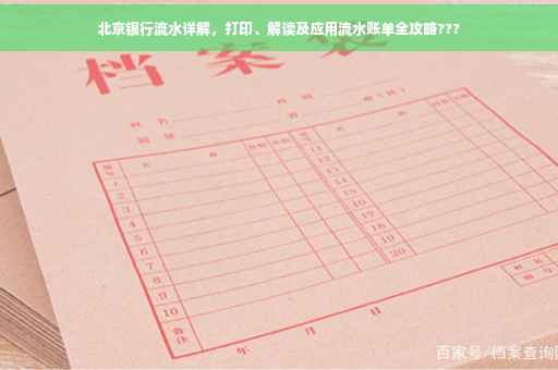 摘要:本文将详细介绍北京银行流水账单的制作过程,包括如何打印流水账单及解读其中的信息。还将介绍如何应用流水账单,以帮助读者更好地管理个人财务。内容涵盖北京银行流水账单的基本信息、打印方法、解读要点及应用场景等方面。
