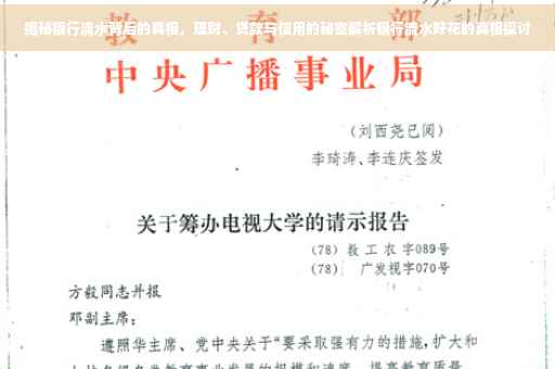 摘要:本文将揭示银行流水背后的真相,探究理财和贷款时如何利用银行流水。通过深入了解银行流水的秘密,我们将揭示其是否容易被视为良好的信用表现,以及如何利用银行流水进行合理理财和贷款申请。本文旨在帮助读者更好地理解银行流水的重要性及其背后的真相。