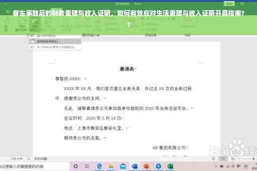 4、寻求新机遇:利用事故后的经历,寻找新的工作机会、学习新技能或开展新事业,重新融入社会,客车事故后的收入证明是经济恢复的关键,除了妥善保存与收入相关的证明材料外,了解法律权益、与保险公司充分沟通、节约开支、寻求社会支持和重建生活也是重要的应对策略,希望本文能为客车事故受害者提供一些帮助和建议让他们能够重拾信心勇敢地面对生活的挑战开启新的生活篇章,在这个充满挑战的时刻让我们共同为受害者祈祷愿他们早日康复重建美好生活。